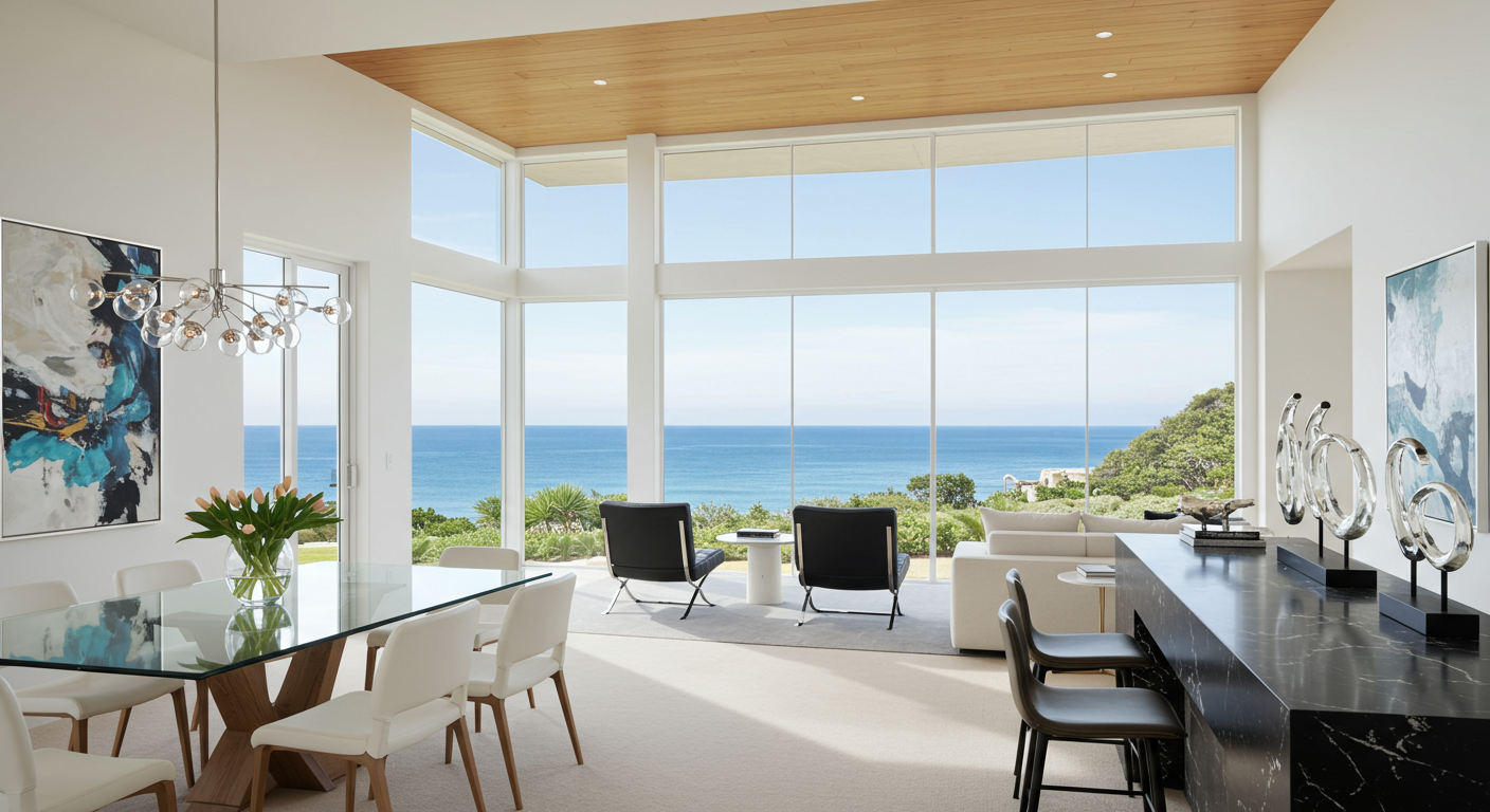 Floor-to-ceiling windows. Expansive windows are a must. They let in natural light and provide stunning views of the outdoors, especially if your house happens to be right on the beach.