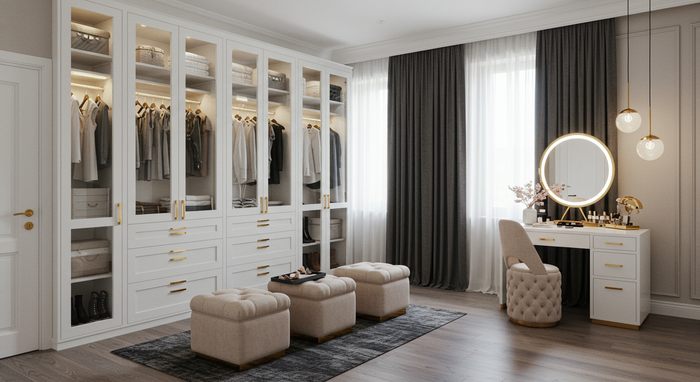 If you have the space, a dressing room or walk-in closet is a must-have for any luxury bedroom.